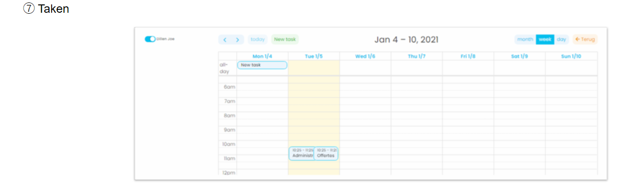 In Taken kan je afspraken en to do’s noteren. Je kan dit voor jezelf, maar ook voor al je medewerkers, nadat je die hebt toegevoegd bij instellingen